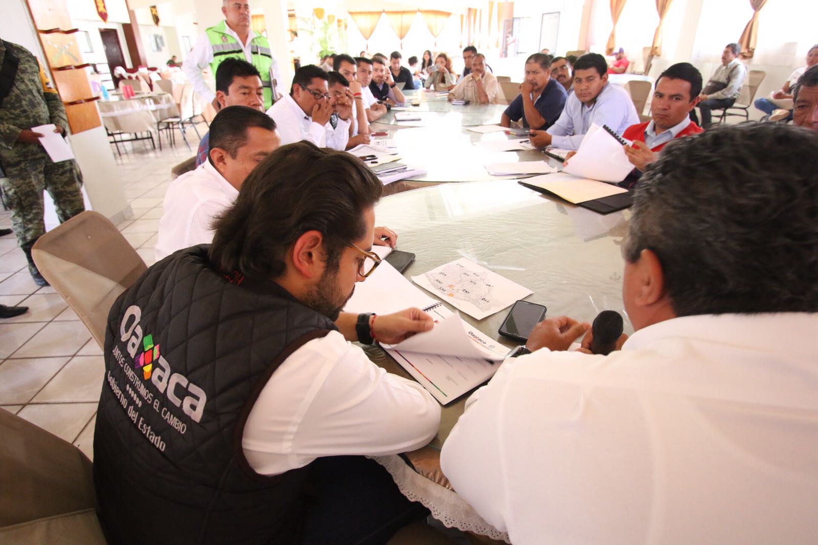 Miahuatlán de Porfirio Díaz, Oax. 22 de junio de 2017. El Secretario de Desarrollo Social y Humano (Sedesoh), Raúl Bolaños Cacho Cué, encabezó este jueves, junto a autoridades municipales de la Sierra Sur, la junta de evaluación y seguimiento de las actividades realizadas para resarcir los daños ocasionados por las tormentas “Beatriz” y “Calvin”.