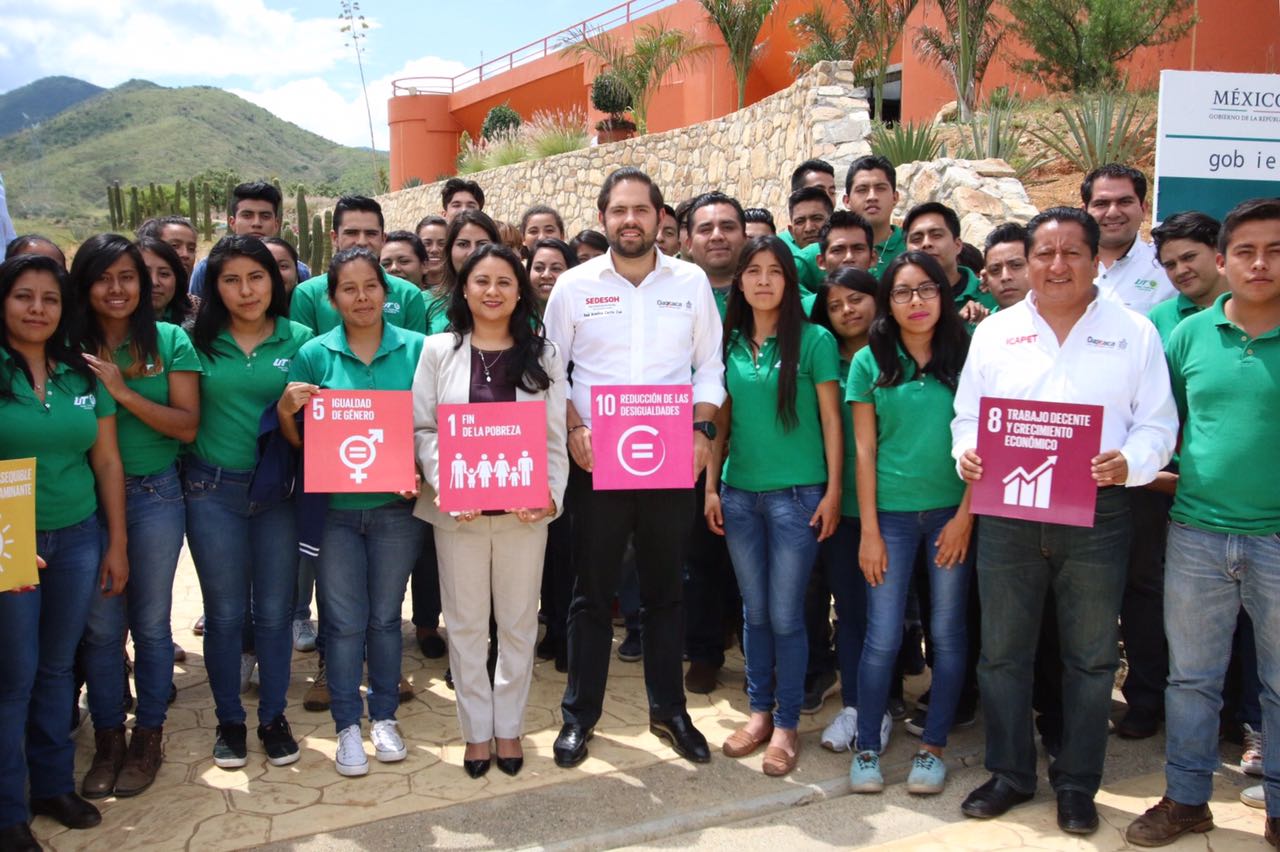 San Pablo Huixtepec, Oax. 3 de agosto de 2017.Durante su visita a la Universidad Tecnológica de los Valles Centrales de Oaxaca (UTVCO), el secretario de Desarrollo Social y Humano, Raúl Bolaños Cacho Cué, reconoció la labor de este sistema educativo al ser la única institución, que lleva a cabo siete Objetivos de Desarrollo Sostenible (ODS), alineados a la Agenda 2030 de la Organización de las Naciones Unidas (ONU).
