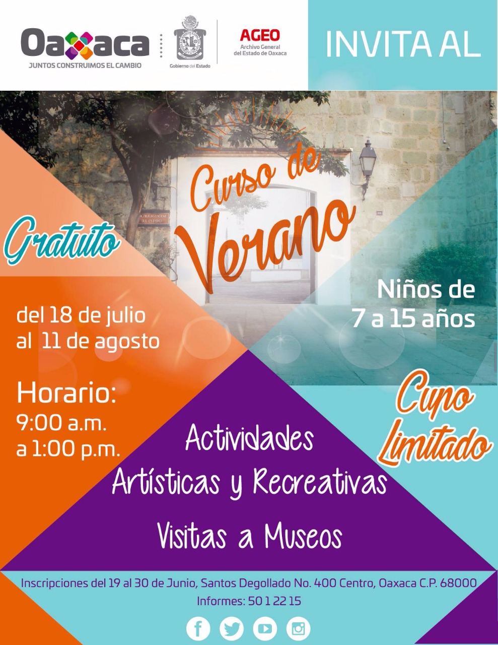 Con la finalidad de promover el acercamiento de las niñas y niños a la cultura e historia, el Gobierno del Estado, a través del Archivo General del Estado de Oaxaca (AGEO), iniciará en las próximas semanas el “Curso de Verano 2017”.