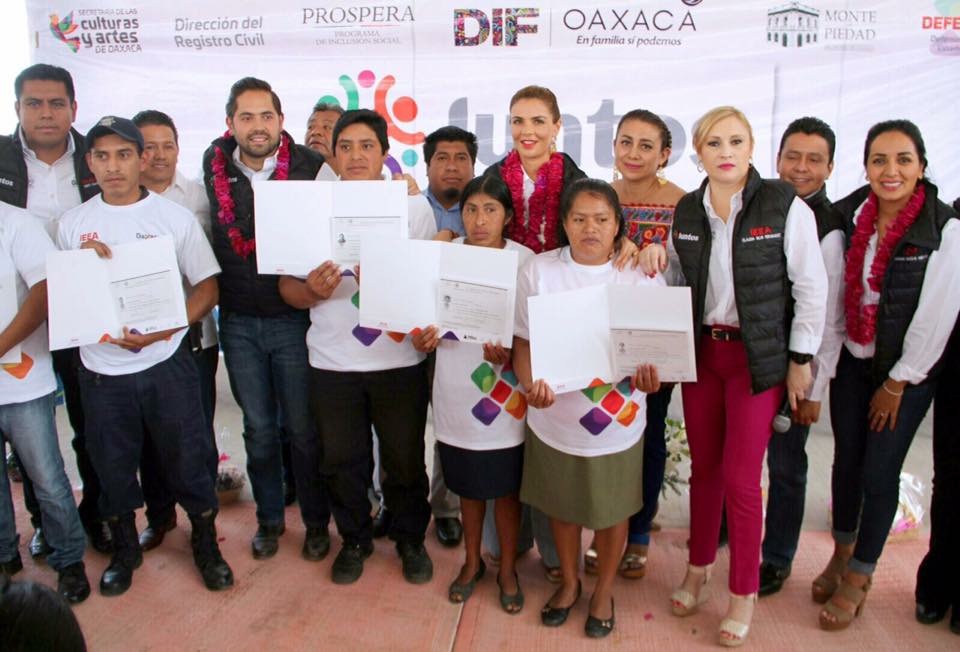 Santa María Teopoxco, Oax. 28 de abril de 2017. La Presidenta del Sistema Estatal para el Desarrollo Integral de la Familia (DIF), Ivette Morán de Murat, encabezó la gira “Juntos”, en coordinación con dependencias estatales y federales para acercar los programas de asistencia social a esta población de la Cañada.