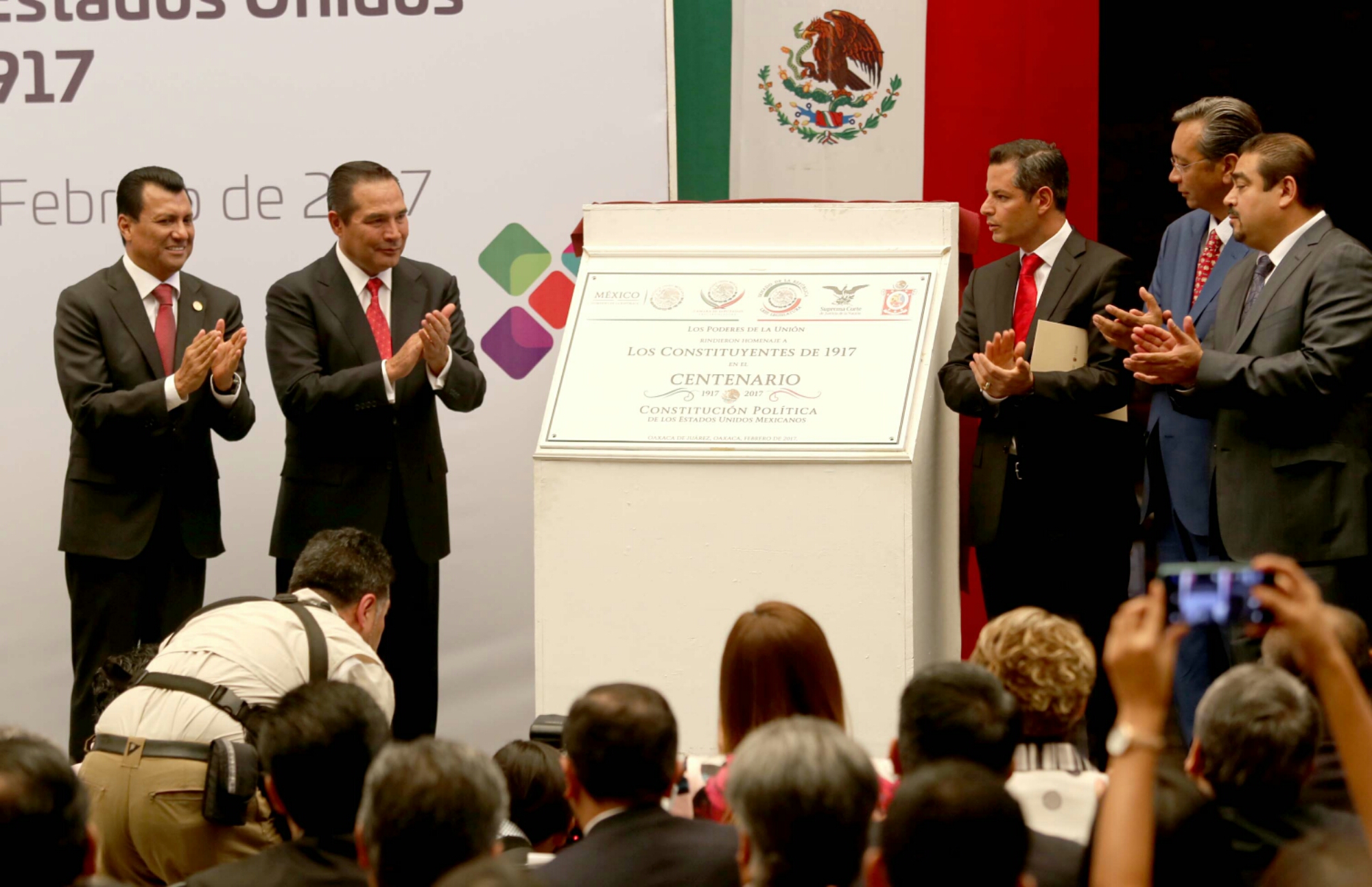 Destacó que nuestra Constitución hoy sigue viva, muchos mexicanos viven en ella, y algunos oaxaqueños como son Juan Sánchez de Zimatlán; Leopoldo Payán de Tlaxiaco; Manuel Herrera Maderista de la capital del Estado; Porfirio Sosa de Tezoatlán; Celestino Pérez de Tlacolula de Matamoros; Crisóforo Rivera Cabrera, oriundo de Tehuantepec; el juchiteco Joséfo Gómez, siete héroes constitucionales cuyo caudal de ideas hicieron que Oaxaca ocupara un importante lugar de excepción.