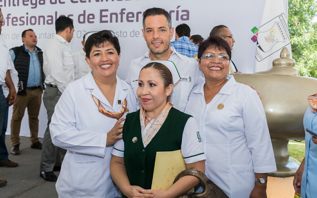 En compañía del Secretario de Salud, Celestino Alonso Álvarez, el mandatario oaxaqueño destacó el compromiso de superación de las y los profesionales de enfermería por cumplir con los exámenes adicionales de conocimientos, habilidades, capacidades y asistenciales, contribuyendo con ello al cuidado de la vida y salud de la población.