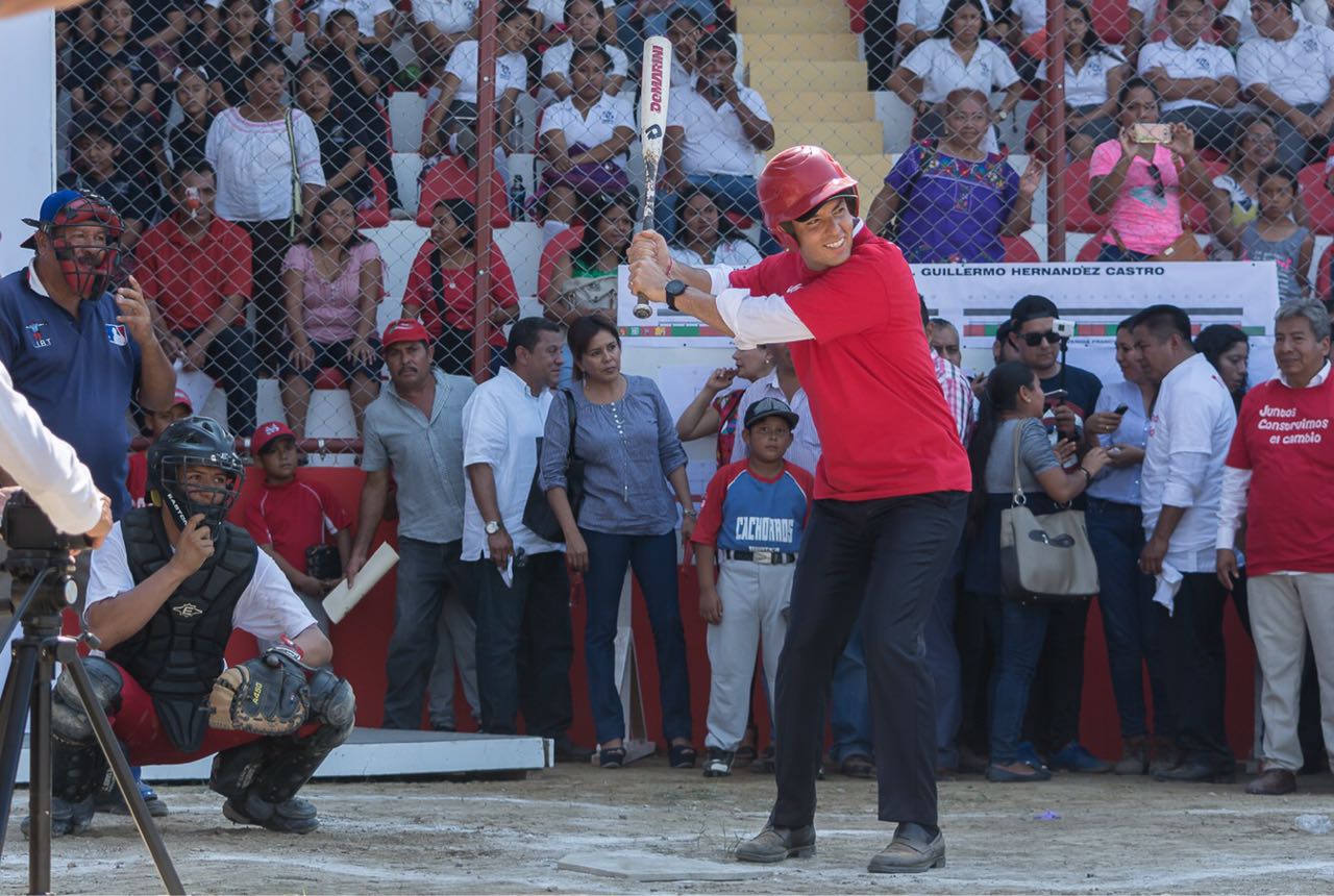 Junto a los integrantes de la Selección de Béisbol de Tuxtepec y portando su playera distintiva, el mandatario oaxaqueño se aventuró a lanzar la primera bola ante las miradas de las y los niños, jóvenes y personas adultas que abarrotaron las gradas desde temprana hora.