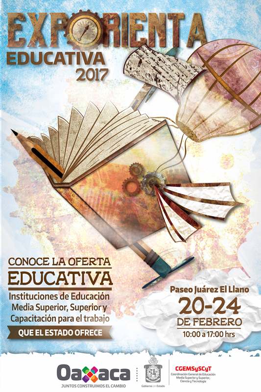 Oaxaca de Juárez, Oax. 16 de febrero de 2017. La Coordinación General de Educación Media Superior y Superior, Ciencia y Tecnología (CGEMSySCyT), en colaboración con instituciones educativas públicas y privadas de los niveles medio superior y superior, llevarán a cabo del 20 al 24 de febrero del presente año, la 29ª edición de la Exporienta Educativa 2017.
