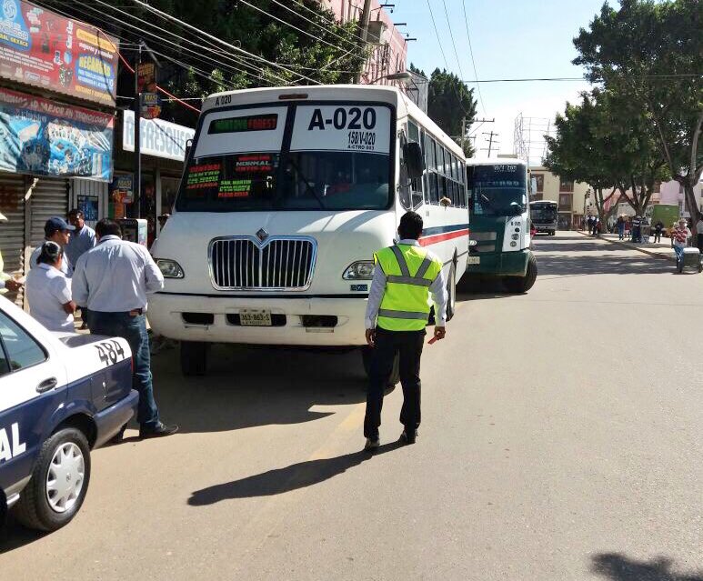 San Antonio de la Cal, Oax. 18 de agosto de 2017. Con el propósito de continuar las supervisiones al transporte público, supervisores del Departamento de Normatividad de la Dirección de Operación del Transporte Público de la Secretaría de Vialidad y Transporte (Sevitra) en coordinación con elementos de la Policía Estatal, Policía Vial Estatal y Municipal, realizaron inspecciones a unidades de Transporte Público Concesionado en la modalidad de Urbano, Suburbano y taxi foráneo.