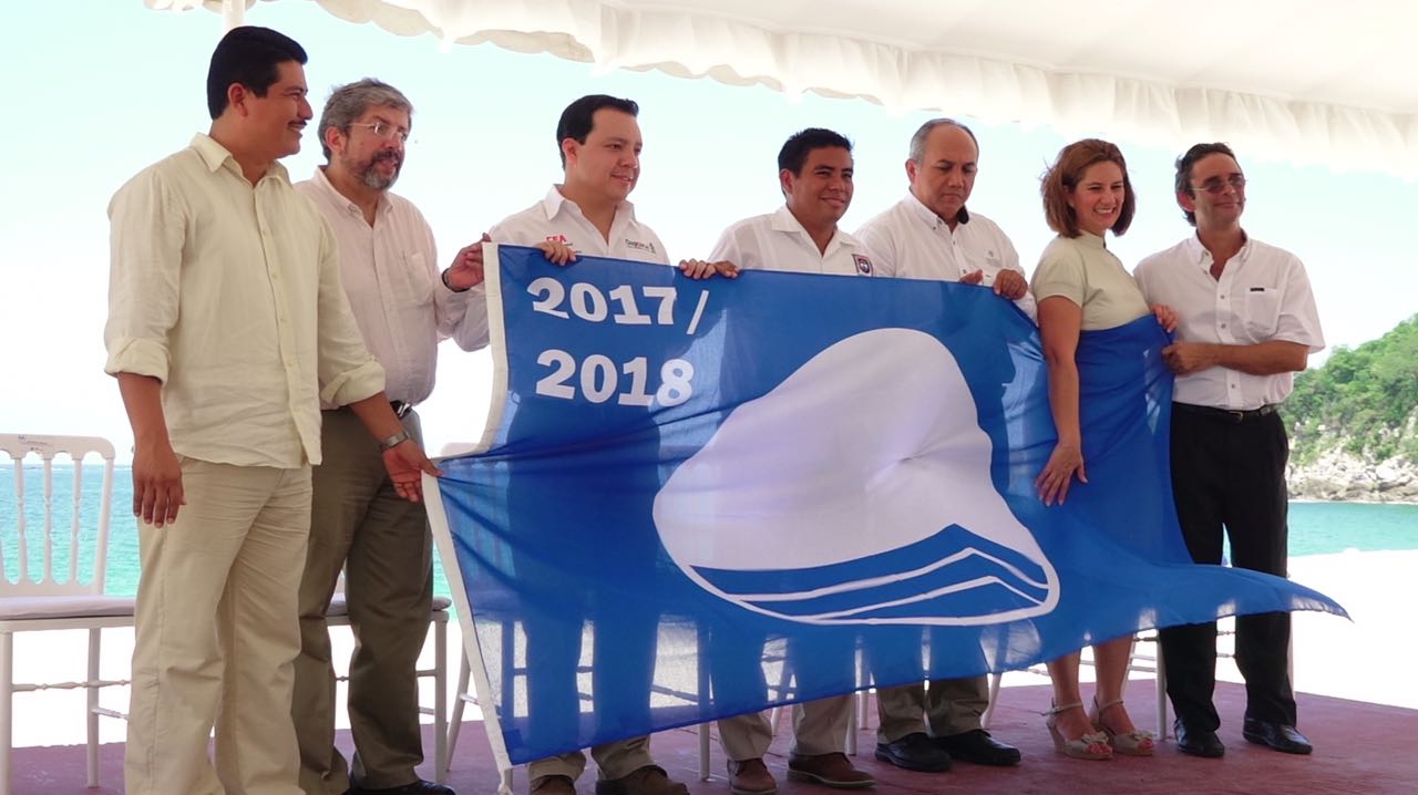 Santa Cruz Huatulco, Oax. 31 de julio de 2017. Con la representación del Gobernador Alejandro Murat Hinojosa, el Director General de la Comisión Estatal del Agua (Cea), Benjamín Hernández Ramírez, recibió el distintivo internacional «Blue Flag», concedido a la Playa Chahué del destino turístico de Bahías de Huatulco.