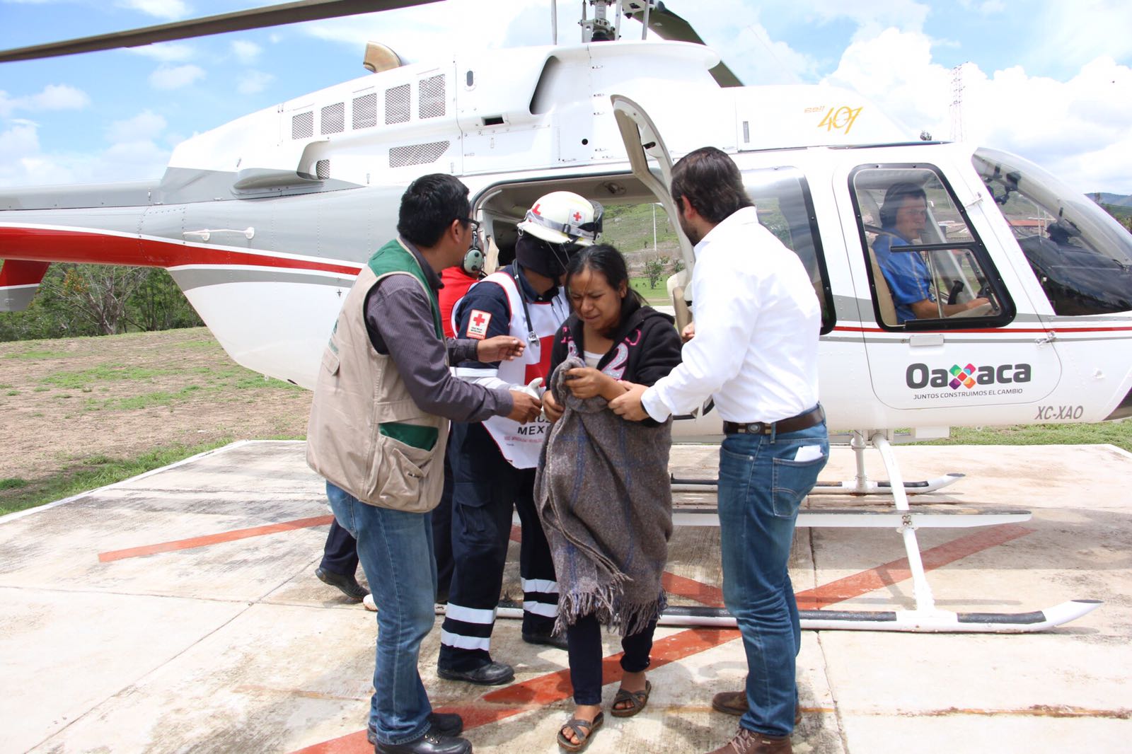 Durante este recorrido, se brindó asistencia a Gabina Cruz Hernández, de 22 años de edad, quien fue trasladada en helicóptero al Hospital del Instituto Mexicano del Seguro Social (IMSS), con sede Miahuatlán, para recibir atención médica luego de dar a luz.