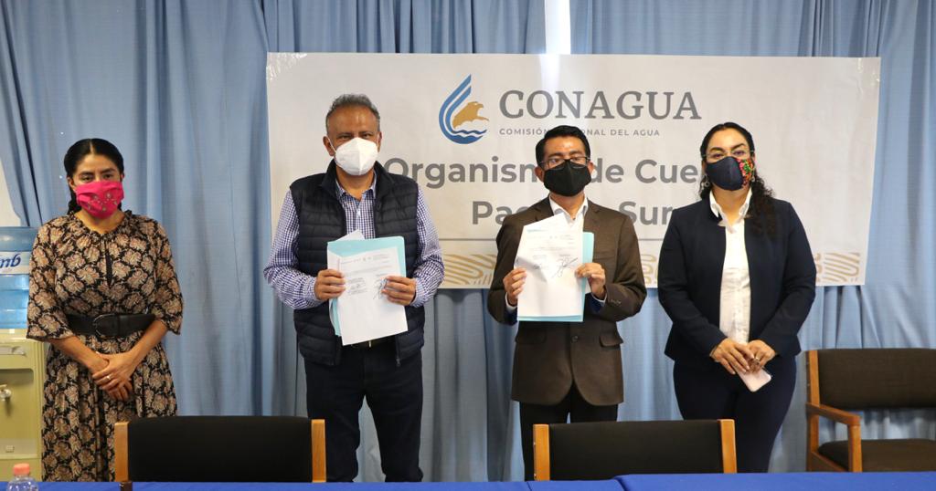 Oaxaca de Juárez, Oax. 21 de agosto de 2020. Con una inversión superior a los 300 millones de pesos, los gobiernos de México y Oaxaca, representados por la Comisión Nacional del Agua (Conagua) y la Comisión Estatal del Agua (CEA), signaron un acuerdo que plantea impulsar obras de agua potable y saneamiento en diferentes regiones de la entidad.