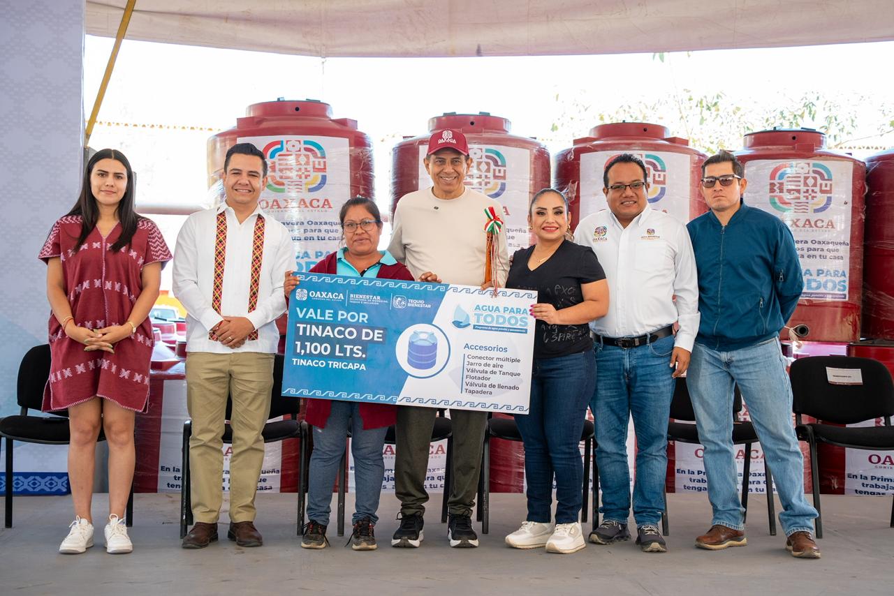 Oaxaca de Juárez, Oax. 15 de marzo de 2026.- Dando continuidad al programa “Agua para Todas y Todos” y para garantizar que las familias de la Zona Metropolitana de Oaxaca (ZMO) cuenten con acceso a este vital líquido, el Gobernador Salomón Jara Cruz entregó mil 500 tinacos a igual número de familias residentes del municipio San Jacinto Amilpas y demarcaciones conurbadas.
