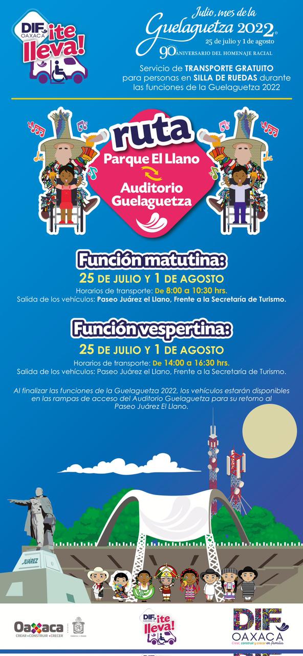 Dicho programa, tiene el objetivo de brindar un servicio de transporte gratuito, dinámico y accesible para las personas en sillas de ruedas que asistan a las funciones de la Guelaguetza 2022 en el cerro del Fortín.