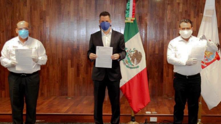 Oaxaca de Juárez, Oax. 1 de mayo de 2020.- En el marco del Día Internacional del Trabajo, el gobernador Alejandro Murat Hinojosa se reunió con representantes de la Sección 22 del Sindicato Nacional de Trabajadores de la Educación (SNTE) en el complejo de Ciudad Administrativa “Benemérito de las Américas”, en donde reiteró su compromiso de trabajar con respeto y cordialidad por el fortalecimiento de la educación pública, desde su posición de aliado de las y los maestros.