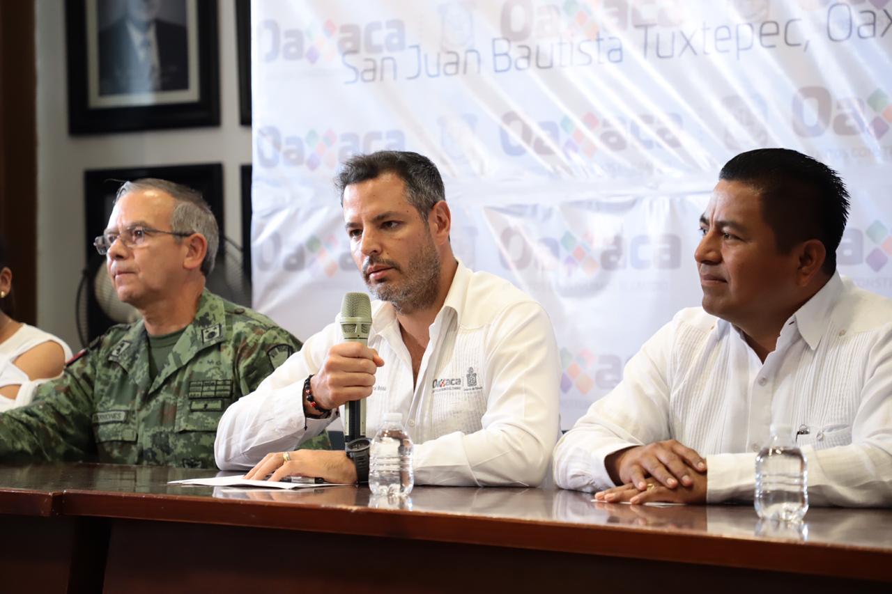 Lo anterior, fue dado a conocer durante un pronunciamiento del Mandatario Estatal hecho ante los medios de comunicación en el Palacio Municipal de Tuxtepec, luego de encabezar la Reunión del Consejo de Seguridad de este lugar, en coordinación con autoridades de la Secretaría de la Defensa Nacional (Sedena).