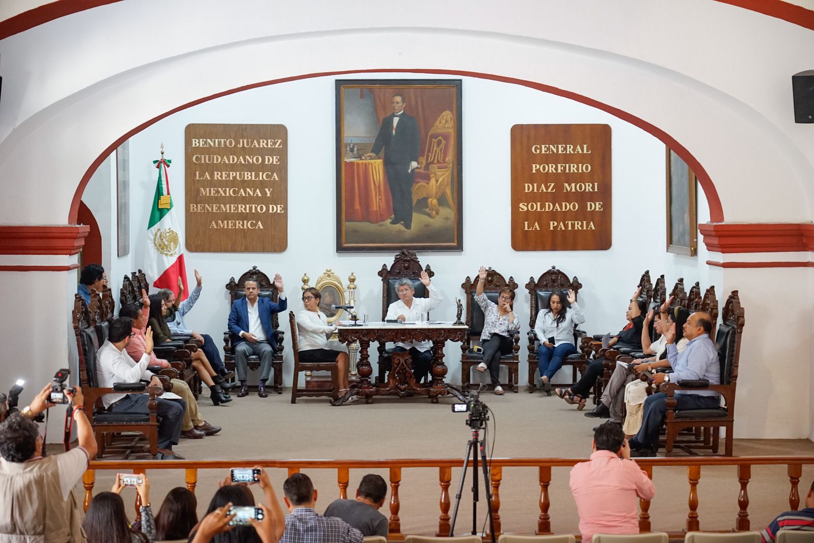 Este importante acontecimiento será conmemorado por el edil capitalino y las y los concejales de la ciudad en Sesión Solemne de Cabildo, para lo cual el presidente municipal, Francisco Martínez Neri, propuso un punto de acuerdo para habilitar como recinto oficial de esta sesión al emblemático Teatro «Macedonio Alcalá», lo cual fue aprobado por unanimidad.