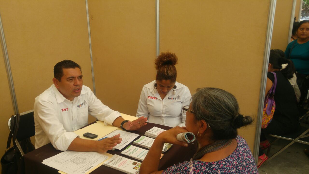 En la explanada municipal de Pinotepa, continúan instalados los módulos de los diferentes organismos sectorizados como el Servicio Nacional de Empleo, y los institutos oaxaqueños de Capacitación y Productividad para el Trabajo, de las Artesanías y del Emprendedor y de la Competitividad, que han puesto al servicio de la población afectada y formalmente constituida, los programas y esquemas de financiamiento que se brindan.