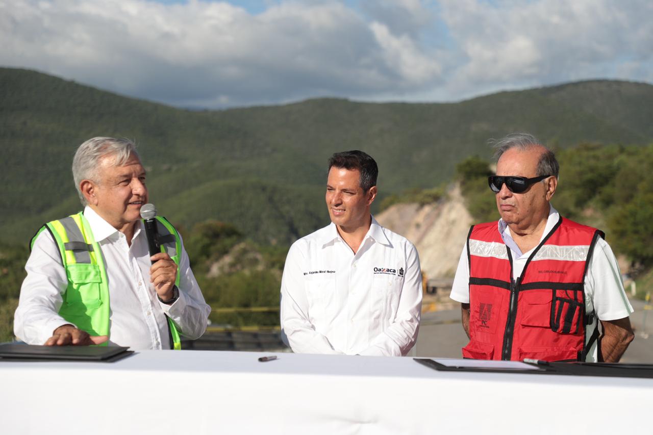 - El gobernador Alejandro Murat y el presidente Andrés Manuel López Obrador atestiguaron la firma del compromiso para la reactivación de la construcción de esta obra