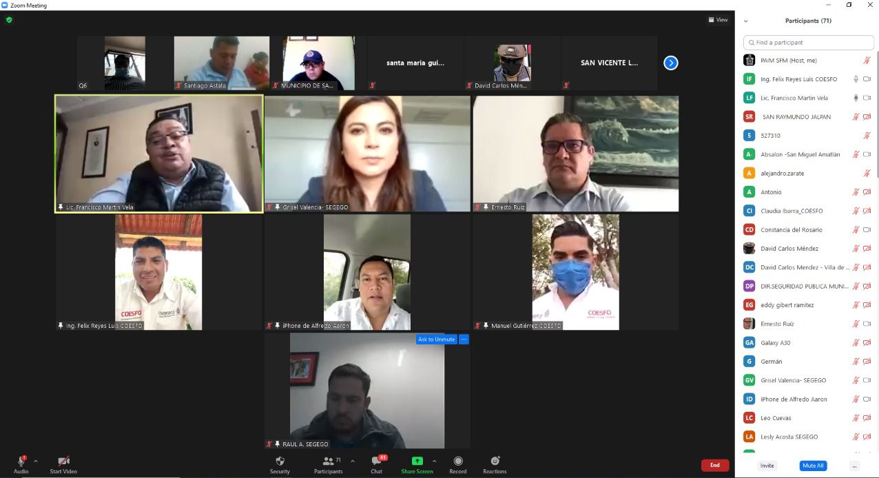 En esta capacitación participaron las autoridades municipales de Coicoyán de las Flores, Constancia del Rosario, Magdalena Jaltepec, Miahuatlán de Porfirio Díaz, Ocotlán de Morelos, San Agustín de las Juntas, San Andrés Cabecera Nueva, San Andrés Paxtlán, San Antonino Monte Verde, San Bartolo Coyotepec, San Dionisio Ocotepec, San Dionisio Ocotlán, San Felipe Tejalápam, San Francisco Telixtlahuaca, San Jerónimo Coatlán, San Jerónimo Tlacochahuaya, San José Chiltepec, San Juan Bautista Cuicatlán, San Juan Juquila Mixes, San Juan Quiahije, San Juan Tamazola, San Mateo Rio Hondo, San Miguel Ahuehuetitlán, San Miguel el Grande, San Pablo Coatlán.