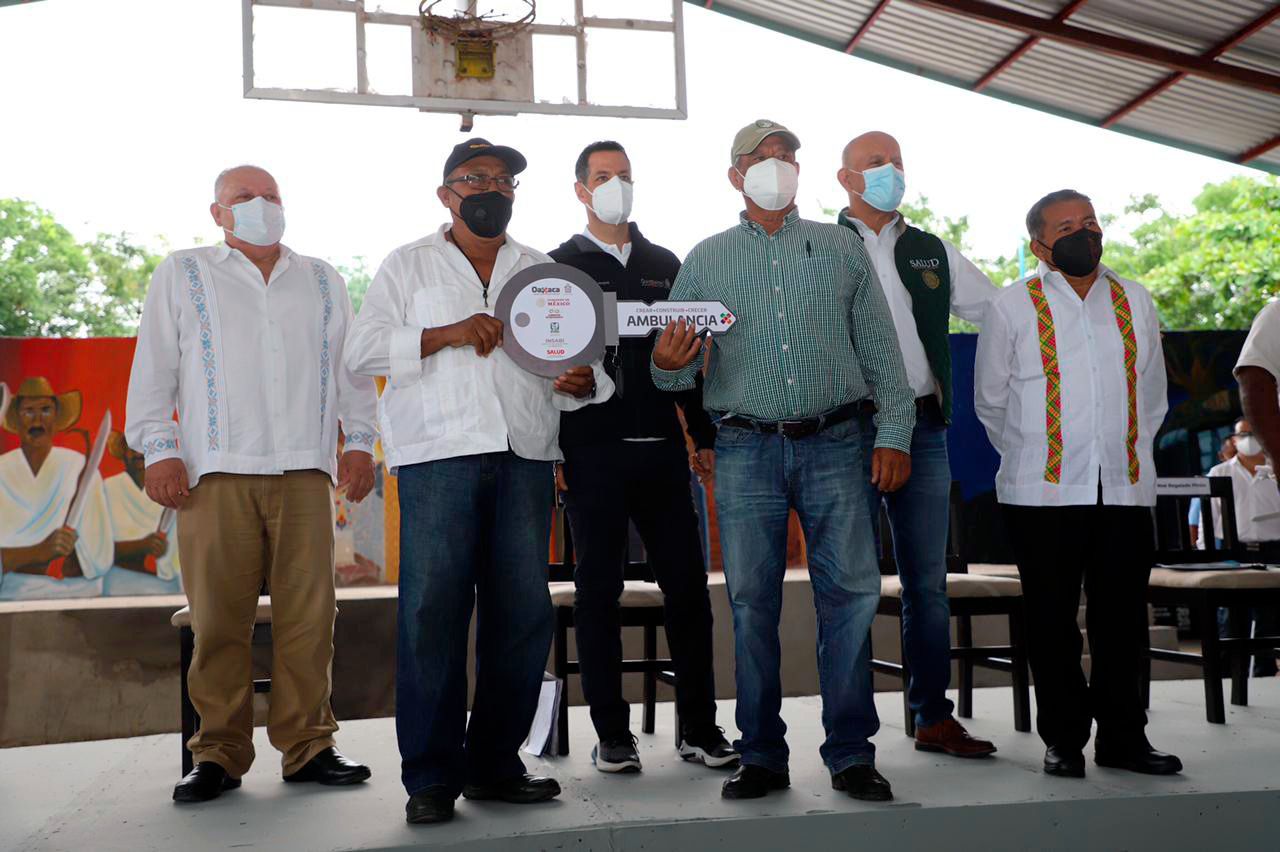 El gobernador Alejandro Murat Hinojosa y el titular del Insabi, Juan Antonio Ferrer Aguilar, entregaron cinco ambulancias a municipios que...