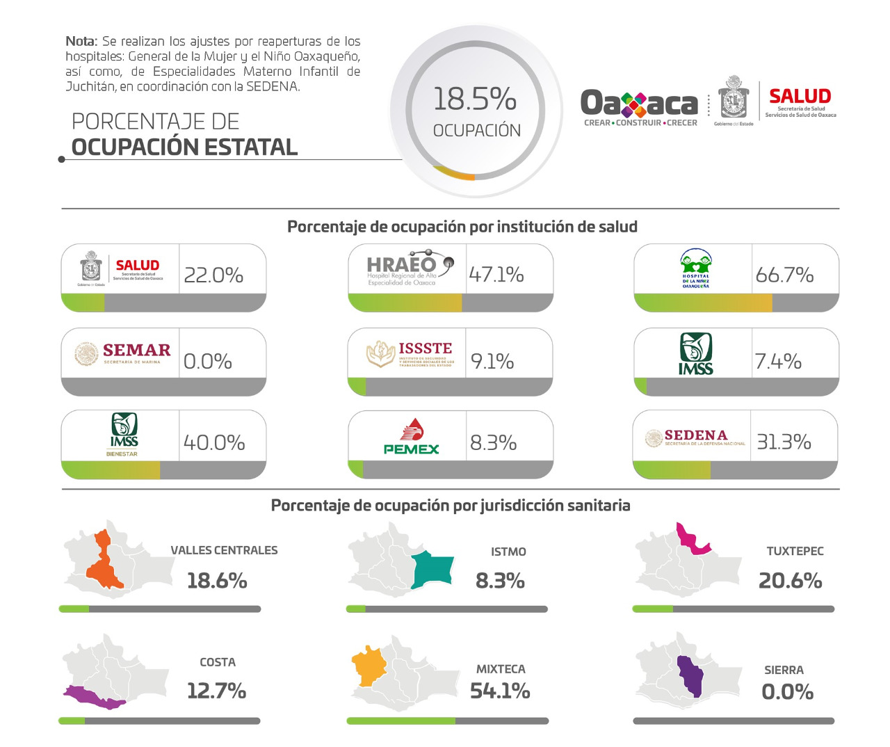 Hospitales de Oaxaca al 18.5% de ocupación de camas, COVID-19: SSO