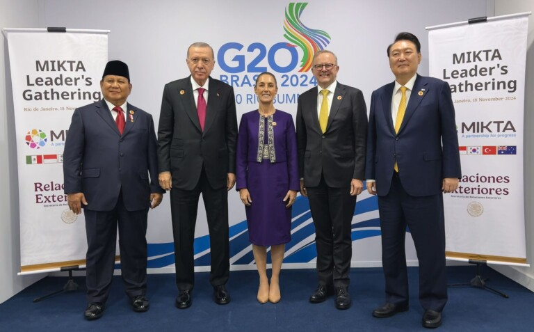 Los líderes de México, Claudia Sheinbaum, Indonesia, Prabowo Subianto, la República de Corea, Yoon Suk Yeol, Türkiye, Recep Tayyip Erdoğan,...