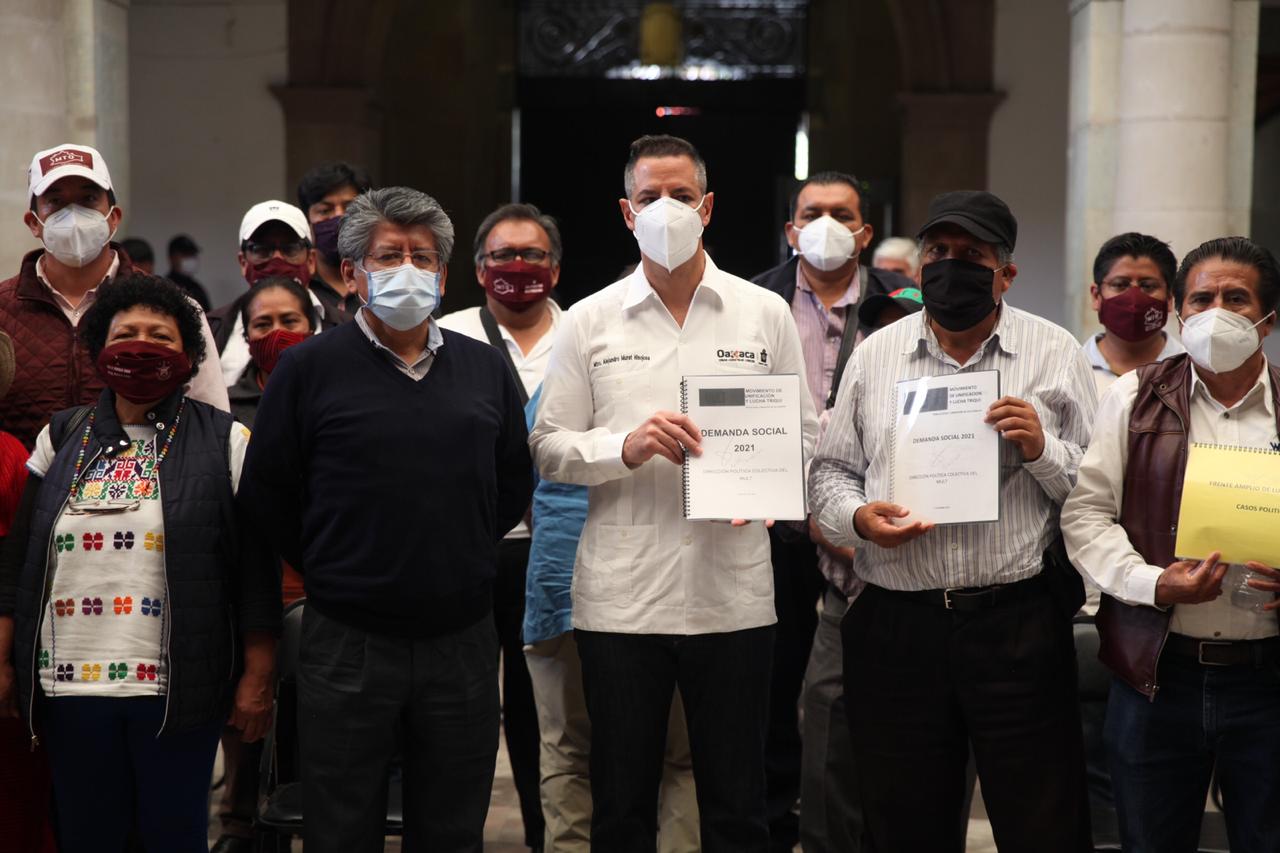 El Mandatario Estatal recibió los Pliegos Petitorio del MULT, FALP y Asamblea de los Pueblos en Defensa del Territorio, la...