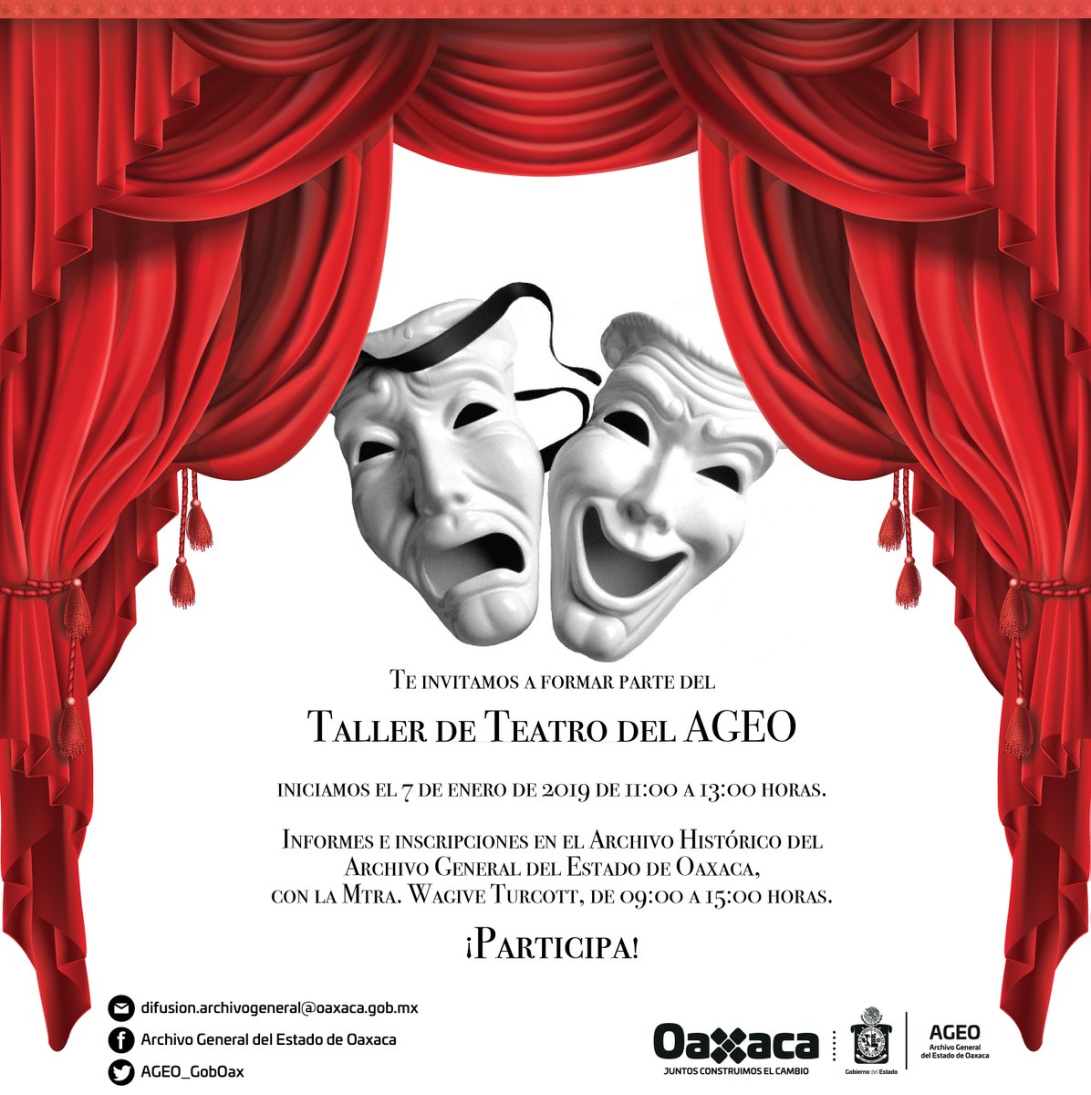 Abierta convocatoria para formar parte del taller de teatro del AGEO Tlalixtac de Cabrera, Oax. 18 de diciembre de 2018....