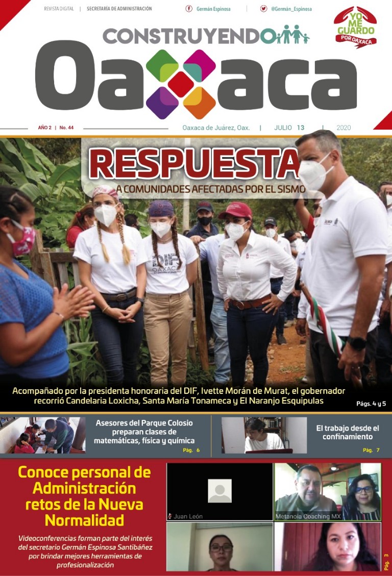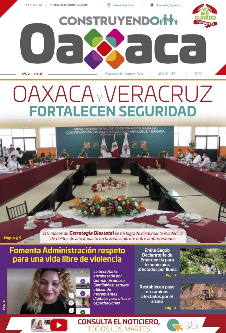 Busca Construyendo Oaxaca todos los lunes, la revista multimedia de Administración Oaxaca de Juárez, Oax., 16 de julio de 2020.-...