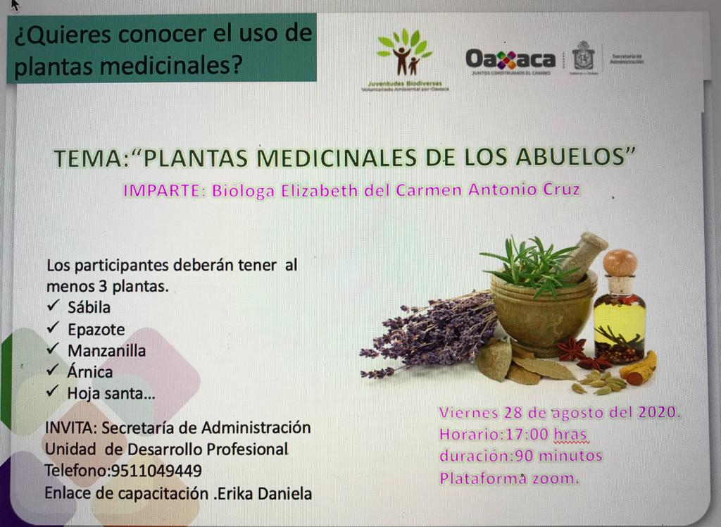 Brinda Administración taller sobre propiedades de plantas terapeúticas Oaxaca de Juárez, Oax., 4 de septiembre de 2020.- Servidoras y servidores...
