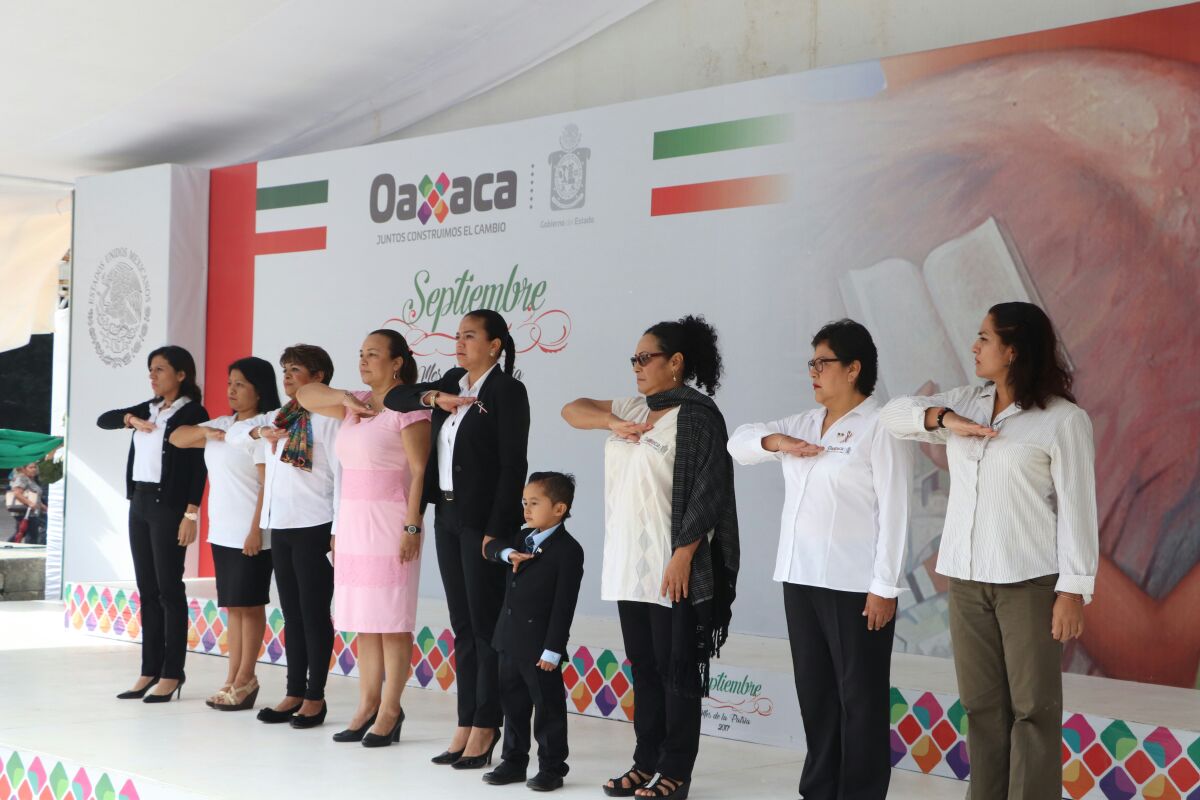 Oaxaca de Juárez, Oax. 6 de septiembre de 2017. Al encabezar el izamiento de bandera en la Alameda de León,...