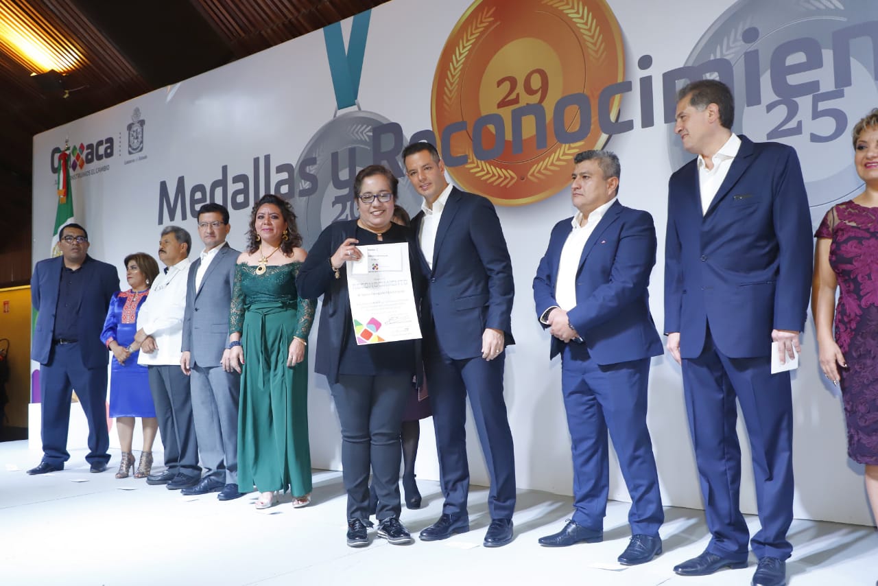 En el marco del Día del Empleado que se conmemora el próximo 21 de octubre, también fueron otorgados reconocimientos, estímulos por desempeño laboral y recategorizaciones, acciones que incentivan la construcción del gobierno moderno y transparente que la sociedad oaxaqueña demanda.