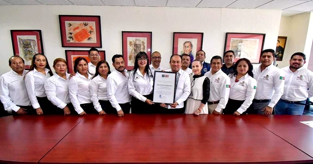 En la sede del Poder Legislativo, el presidente de la Junta de Coordinación Política, Sergio López Sánchez, y la presidenta de la Comisión Permanente de Agua y Saneamiento, Stela María Fraginals Aguilar, entregaron dicha distinción a la presidenta municipal Iris Zavaleta López.