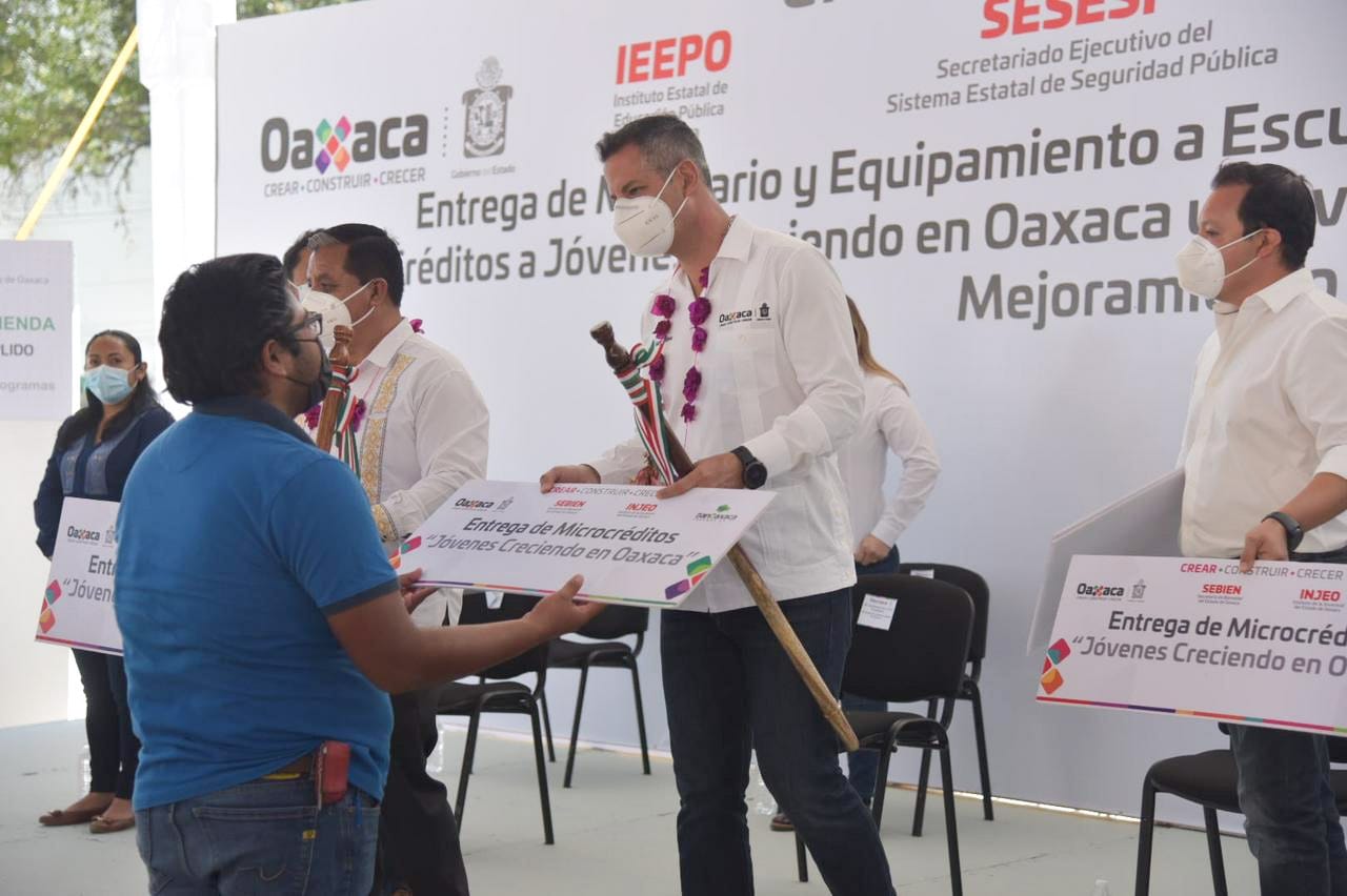 Asimismo, como parte del programa de Financiamiento a negocios por la contingencia sanitaria de la COVID-19 en el estado, el gobernador Alejandro Murat Hinojosa encabezó la entrega de 37 créditos individuales de BanOaxaca por un monto global de 185 mil pesos.