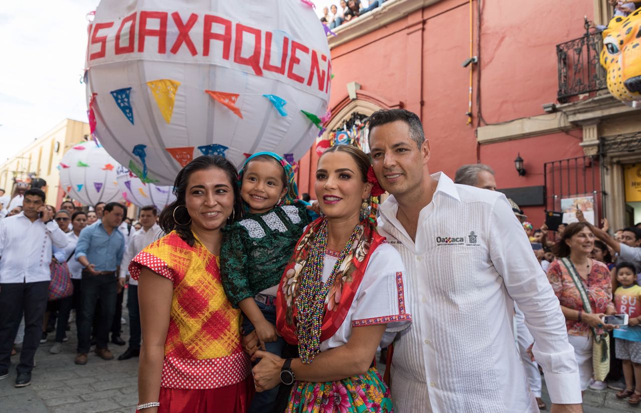En esta procesión de alegría, color, tradición y hermandad entre los pueblos de las ocho regiones de Oaxaca, la representante de la Diosa Centéotl, Francisca Pérez Bautista de Santa María Zacatepec; el Gobernador Alejandro Murat Hinojosa y su esposa Ivette Morán de Murat, así como autoridades del municipio de Oaxaca de Juárez, saludaron a las personas a lo largo de todo el recorrido que inició desde el Paseo Juárez «El Llano» y concluyó hasta el majestuoso Teatro “Macedonio Alcalá”.
