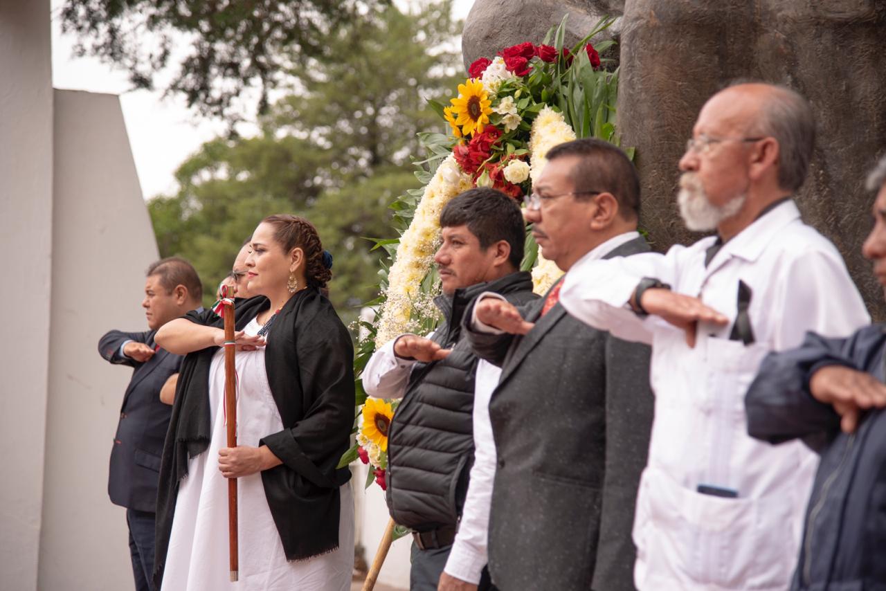 “Hoy más que nunca debemos tener presente su legado, legado que nos obliga a vivir sobre la línea del respeto mutuo y el acatamiento de la ley. No hay leyes distintas para pobres y para ricos, no hay leyes que distingan entre funcionarios y ciudadanos, hay una sola ley que nos rige a todos”, expresó en compañía del presidente municipal, Ángel Martínez Santiago.