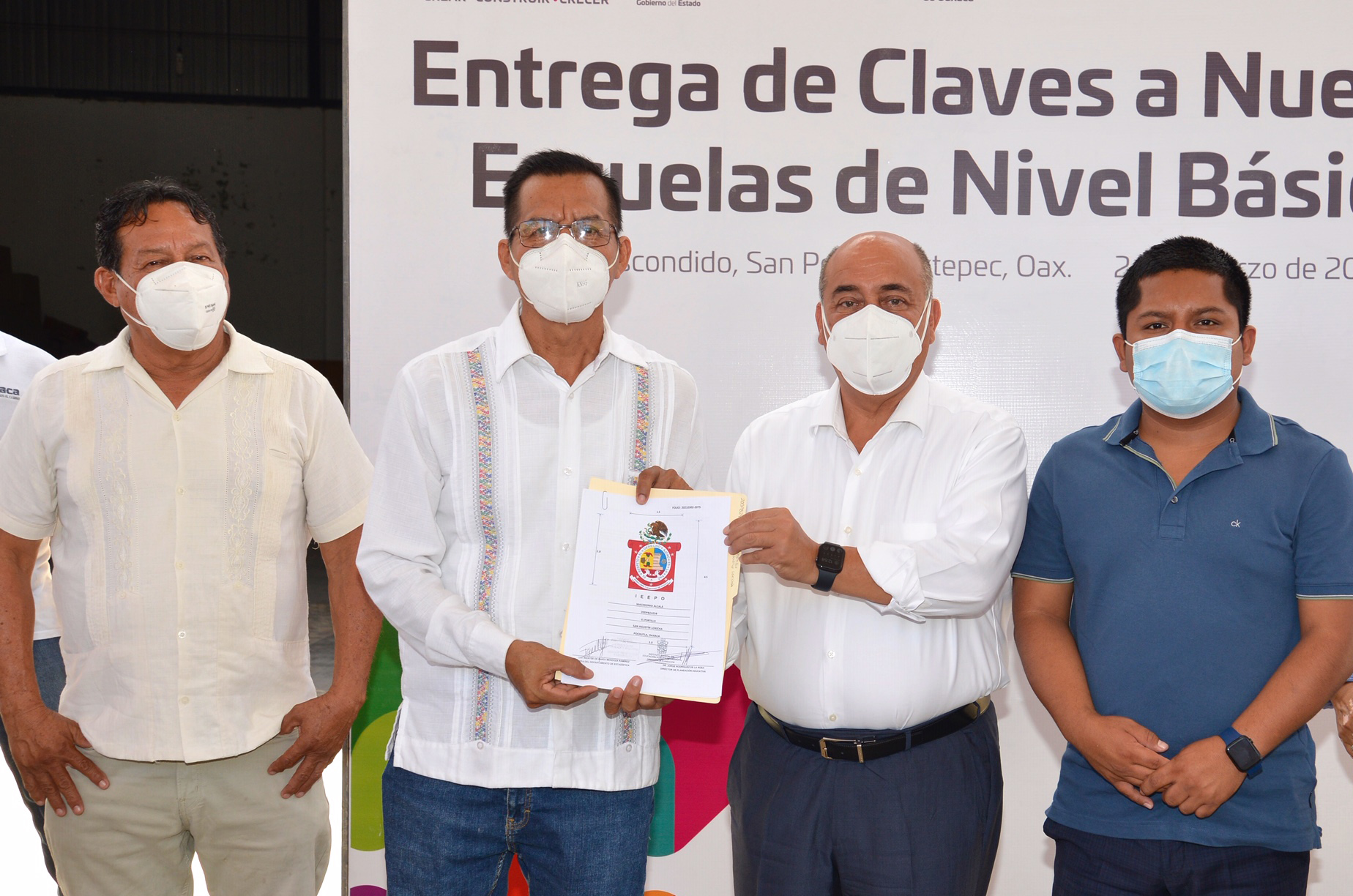 Acompañado del encargado del Despacho Municipal de San Pedro Mixtepec, Óscar Bautista Silva, entregó también cinco claves de Centro de Trabajo a planteles escolares, dos de ellos en San Pedro Mixtepec y tres en Santo Domingo de Morelos, para su incorporación formal en el sistema educativo de Oaxaca.