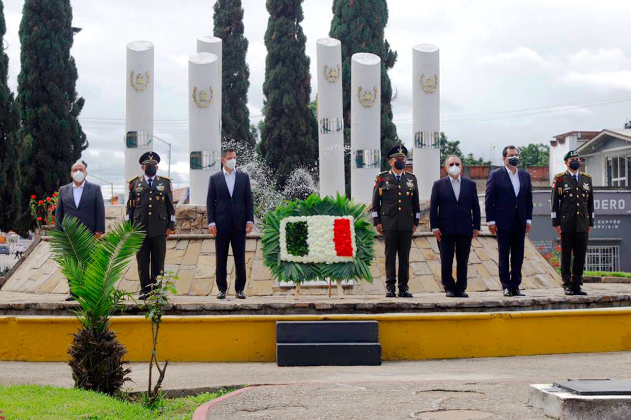 En la ceremonia cívica realizada frente al Monumento a los Niños Héroes ubicado en la calzada Madero de esta ciudad capital, el Mandatario Estatal, junto con las autoridades estatales, municipales, educativas y militares, depositaron una ofrenda floral y montaron una guardia de honor acompañado de un Toque de Silencio.