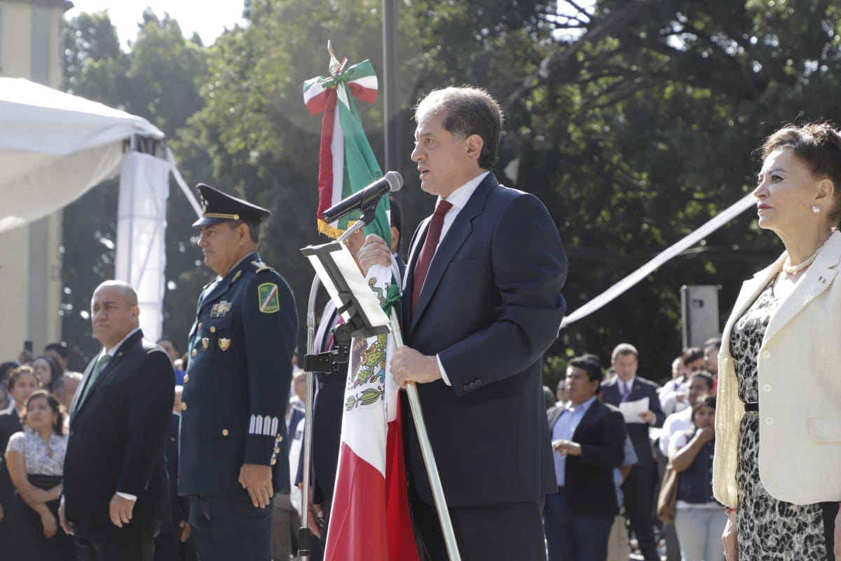 • Con la representación del gobernador Alejandro Murat Hinojosa, el Secretario de Administración encabezó la ceremonia del Día de la Bandera