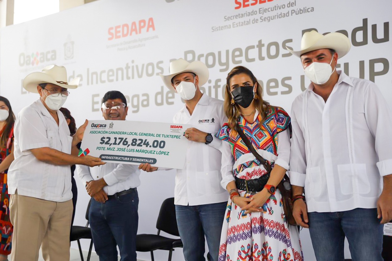 En compañía de la presidenta honoraria del sistema para el Desarrollo Integral de la Familia (DIF) Oaxaca, Ivette Morán de Murat, y del presidente municipal de este lugar, Noé Ramírez Chávez, el Mandatario Estatal entregó también apoyos a jóvenes emprendedores y dotó de uniformes y Certificados Únicos Policiales a elementos de seguridad de este ayuntamiento.