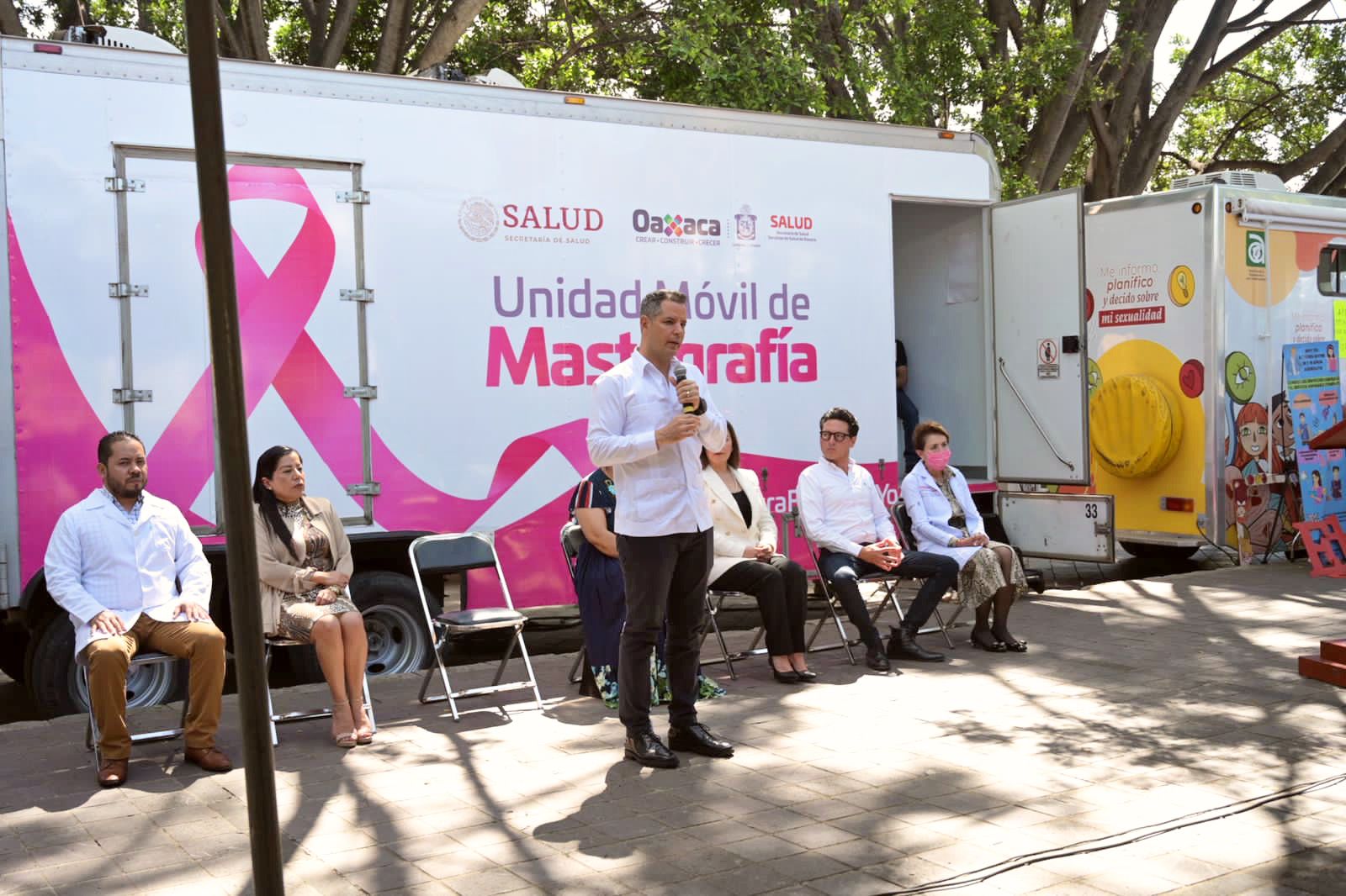 Ante la presencia de personal médico y mujeres oaxaqueñas de todas las edades, el gobernador Alejandro Murat Hinojosa, reiteró su compromiso con las mujeres de la entidad para acercar los servicios de salud, pidió a este sector de la población acercarse a las campañas para protegerse y proteger a sus familias y asumir una cultura de prevención.