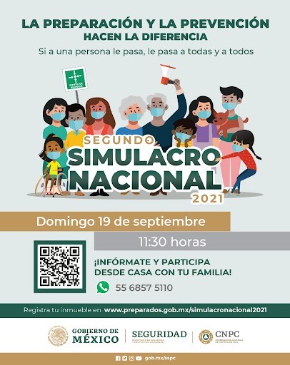 * En el marco del Segundo Simulacro Nacional 2021, a realizarse el próximo 19 de septiembre, la dependencia convoca a servidoras y servidores públicos a sumarse a este ejercicio de protección civil
