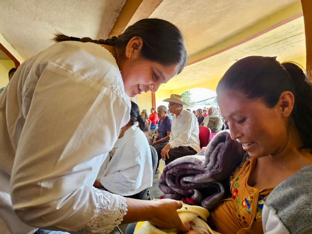 Acompañada de las autoridades municipales y particularmente del pueblo de San Carlos Yautepec y San Miguel Tenango, Silvia Santos hizo entrega de más de mil cobijas para llenar de calidez los hogares de Oaxaca.