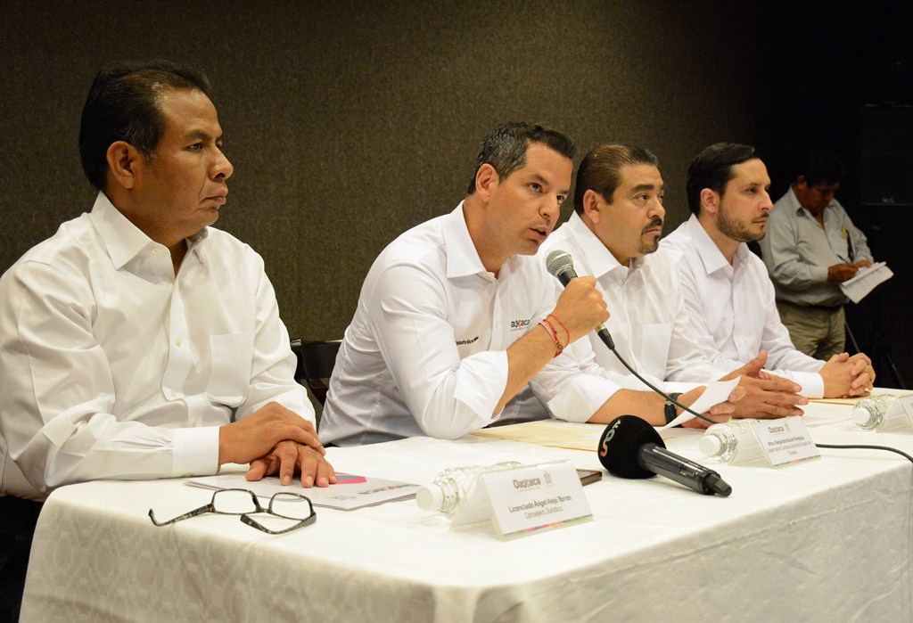 Oaxaca de Juárez, Oax. 1 de febrero de 2017. Este martes en conferencia de prensa el Gobernador del Estado, Alejandro Murat Hinojosa, dio a conocer que su administración apoyará, conforme a sus atribuciones, la realización de elecciones municipales extraordinarias donde el Tribunal Estatal Electoral (TEE) lo determine.