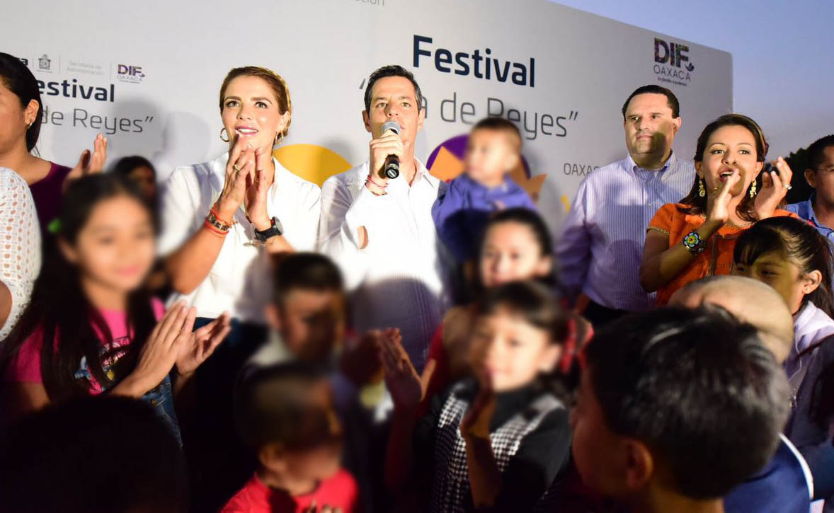 Oaxaca de Juárez, Oax., 6 de enero de 2017. El día de hoy, el Gobernador del Estado Alejandro Murat Hinojosa, acompañado de su esposa la señora Ivette Morán de Murat, Presidenta del Consejo Consultivo del Sistema DIF Estatal, convivió con cientos de niños y niñas el “Festival del Día de Reyes”, organizado por el Gobierno del Estado en las canchas del polideportivo Venustiano Carranza.