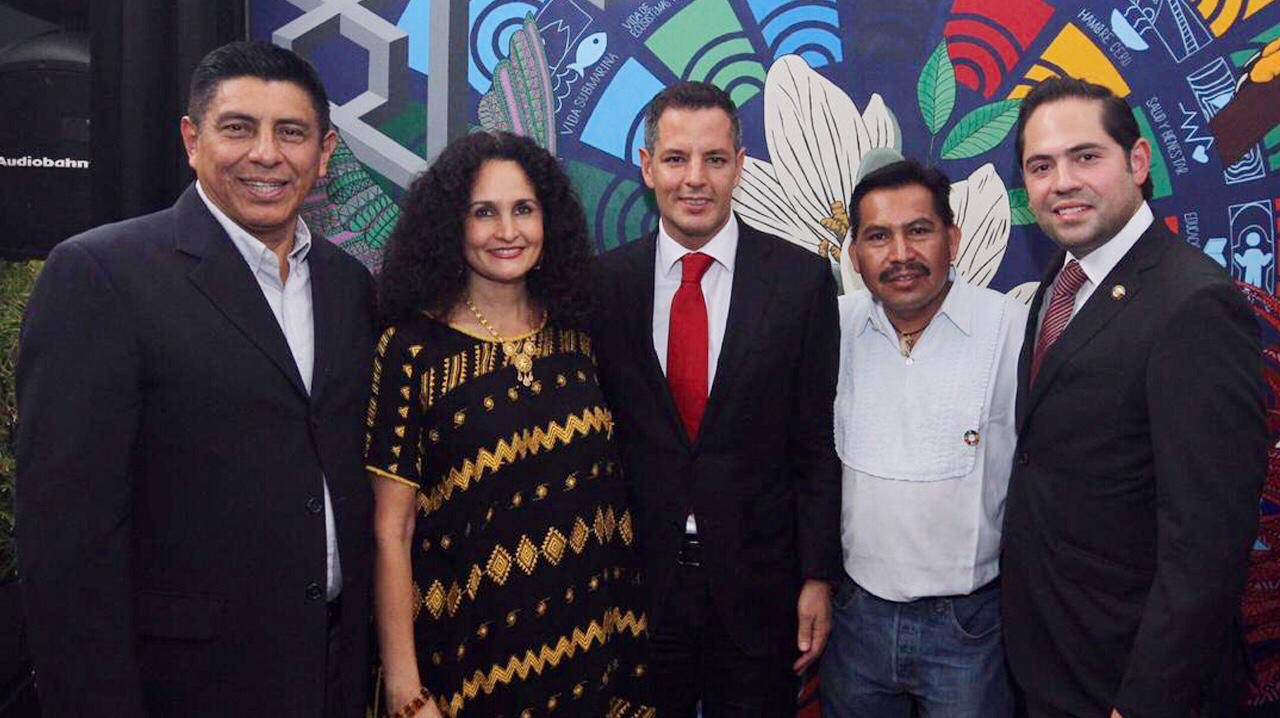 Ciudad de México. 15 de mayo de 2019.El gobernador Alejandro Murat Hinojosa expresó que el Gobierno de Oaxaca avanza en el cumplimiento de los 17 Objetivos de Desarrollo Sostenible (ODS) de la Agenda 2030; lo anterior, al develar en las oficinas de la Coordinación General de Enlace Federal y Relaciones Internacionales, el mural “Agenda 2030”, realizado por los maestros Jacobo y María Ángeles.