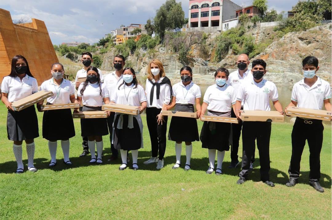 En ese sentido, encabezados por la presidenta honoraria del Sistema para el Desarrollo Integral de la Familia (DIF) Oaxaca, Ivette Morán de Murat; el director general de este organismo asistencial, Christian Holm Rodríguez, y el titular del Instituto de Estudios de Bachillerato del Estado de Oaxaca (IEBO), Alejandro Aroche Tarasco, entregaron computadoras portátiles a estudiantes de excelencia académica de diferentes planteles de esta institución.