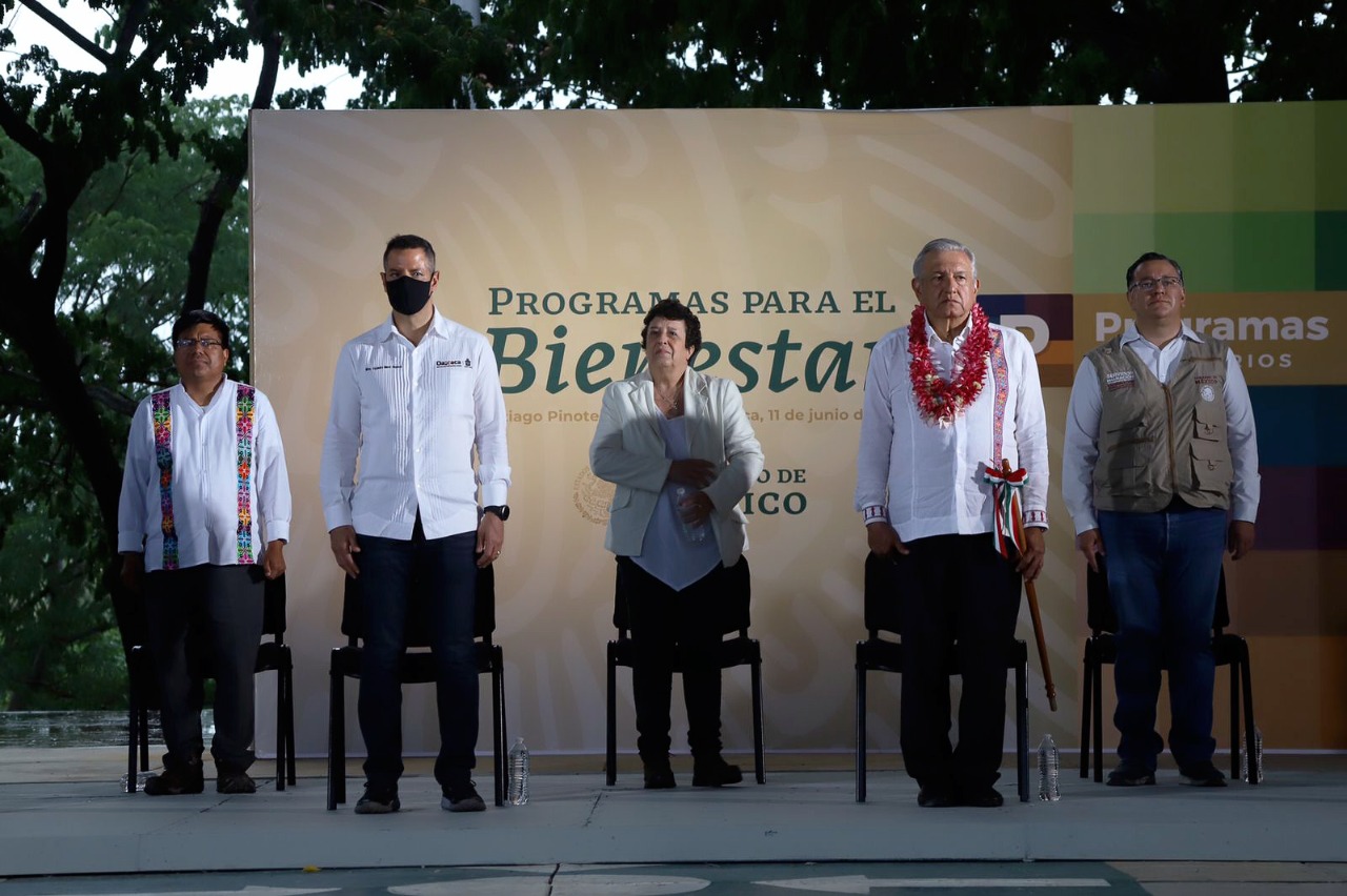 Santiago Pinotepa Nacional, Oax. 11 de junio de 2021. En gira de trabajo por la entidad oaxaqueña, el gobernador Alejandro Murat Hinojosa y el Presidente de México, Andrés Manuel López Obrador, realizaron la evaluación de los Programas para el Bienestar encaminados a erradicar la pobreza y con los cuales se apoya a la niñez, jóvenes, personas adultas mayores, mujeres trabajadoras y personas con discapacidad.