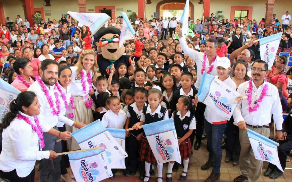 Gracias a la gestión del gobernador Alejandro Murat Hinojosa, y al impulso de la Presidenta Honoraria del Sistema DIF Oaxaca, Ivette Morán de Murat, esta mañana dió inicio en Santa Cruz Xoxocotlán y Tlalixtac de Cabrera, el programa “Desayunos Escolares Fríos”, mediante el cual se contribuirá a que mas niños y niñas en los niveles de educación preescolar y primaria situadas en municipios con alta y muy alta marginación del estado, gocen de una seguridad alimentaria.