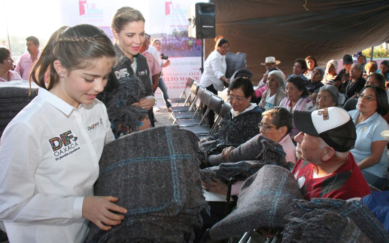 San Agustín Etla, Oaxaca. 11 de enero de 2018. Ivette Morán de Murat, Presidenta Honoraria del Sistema para el Desarrollo Integral de la Familia (DIF) Oaxaca, visitó el municipio de San Agustín Etla, donde entregó apoyos del Programa «Calidez en Familia», a personas mayores, además de aparatos funcionales.