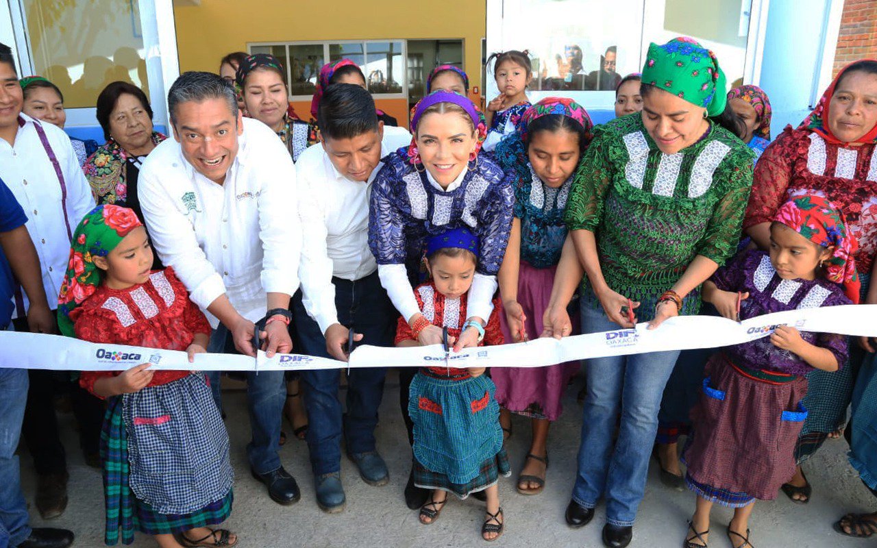 Más tarde, con gran entusiasmo y alegría la esposa del mandatario oaxaqueño, Alejandro Murat Hinojosa, acompañada de autoridades municipales y padres de familias, participó en la inauguración del comedor del Jardín de Niños «Quialana», que beneficiará a las y los niños del mencionado ayuntamiento.
