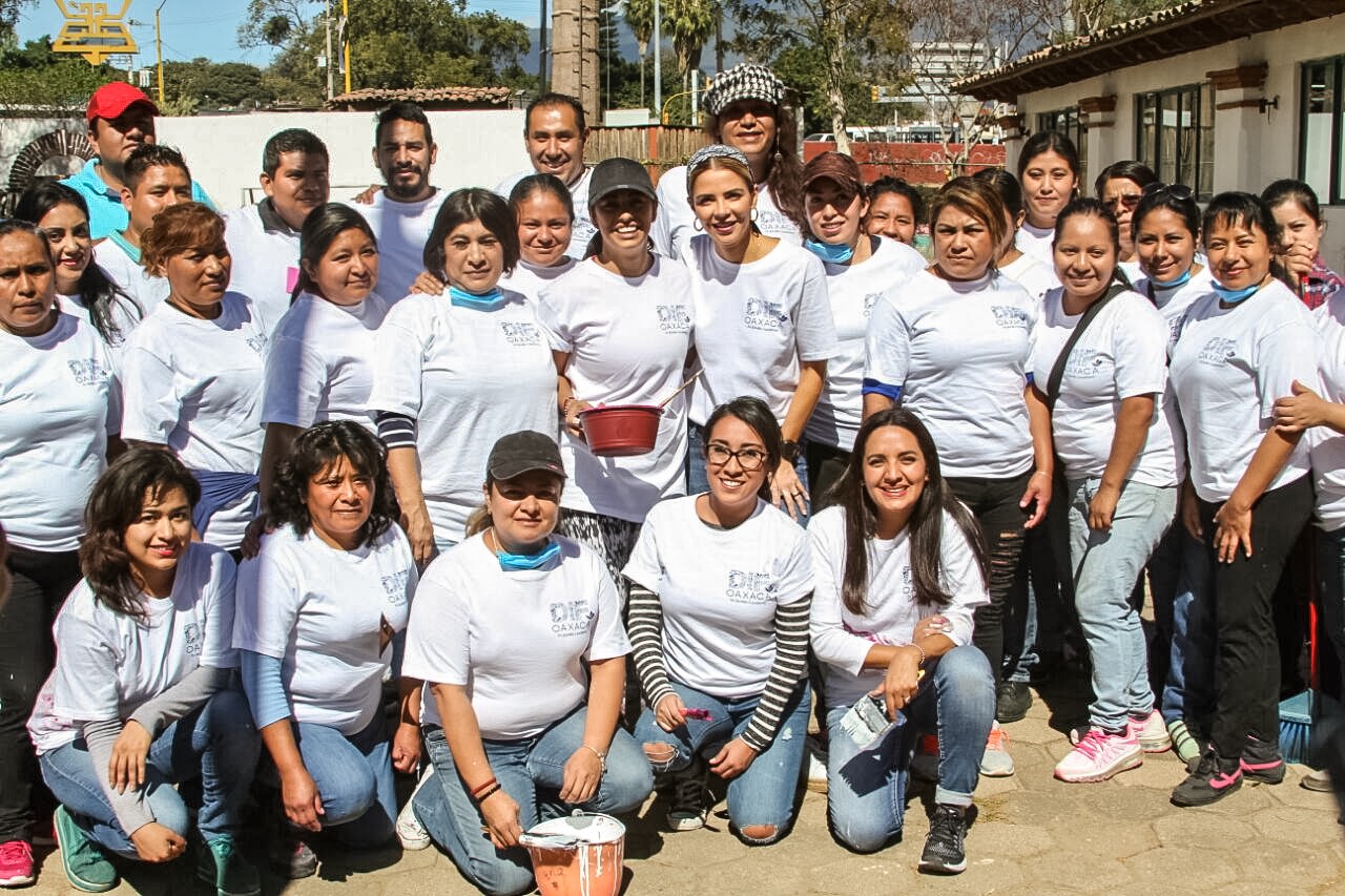 Personal del DIF, Voluntarios e integrantes de diversas Asociaciones Civiles y Dependencias de Gobierno, encabezados por la esposa del Gobernador Alejandro Murat, sus cuatro hijos y la Directora General, Mariana Nassar Piñeyro, participaron desde temprana hora en esta actividad, aportando su mano de obra para rehabilitar las oficinas centrales con pintura y mejora de las áreas verdes.