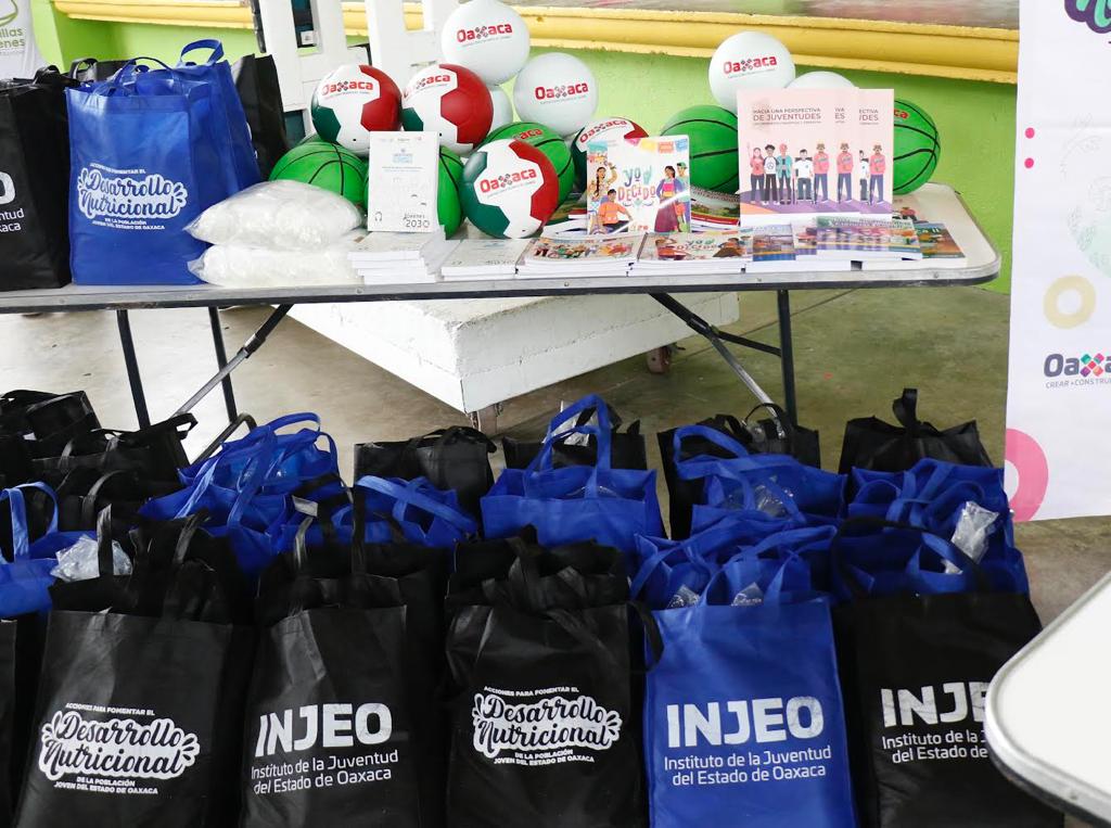 Oaxaca de Juárez, Oax. 25 de octubre de 2022. El director general del Instituto de la Juventud del Estado de Oaxaca (INJEO), Jauri Sánchez Cruz, llevó a cabo la entrega de material deportivo, preservativos, libros y el programa Desarrollo Nutricional al municipio de Santa María Sola, acompañados del Presidente de Bienes Comunales, Evencio Juvenal López Vásquez y su Enlace Municipal de Juventud, Edgar Daniel López Sierra.